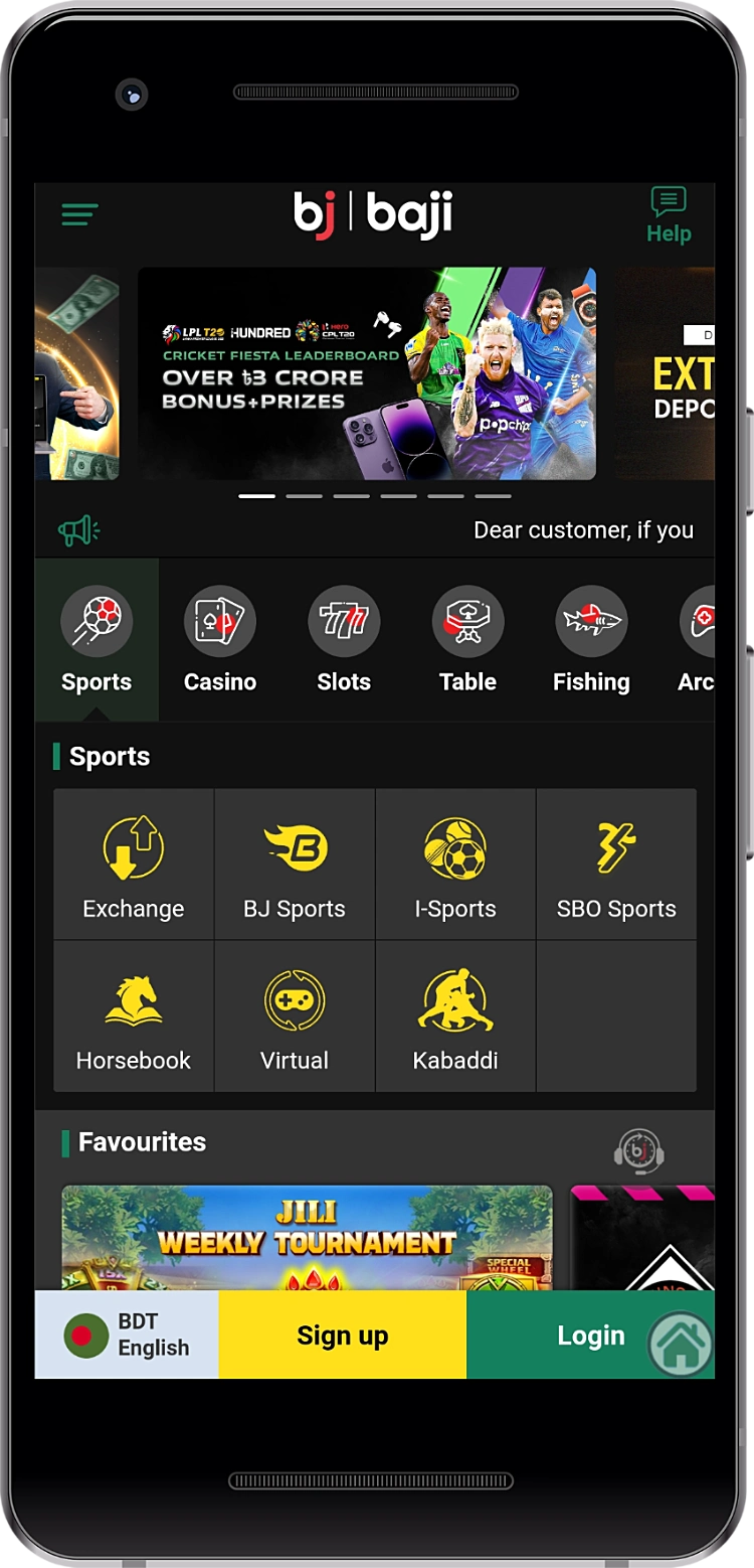 - আপনার মোবাইল ডিভাইসে ডাউনলোড করা Baji অ্যাপটি চালু করুন;